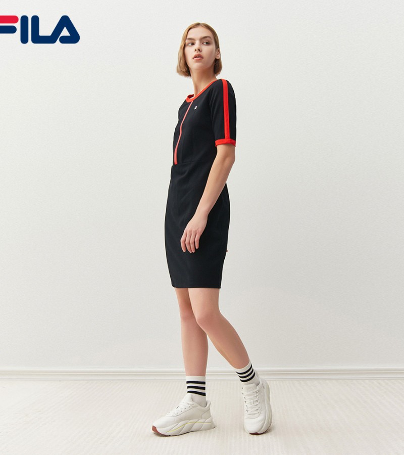 在线独家女式刺绣F-box标志后开叉连衣裙