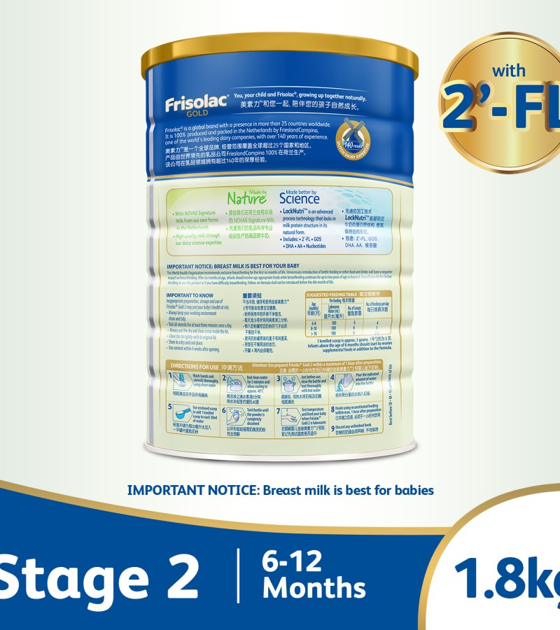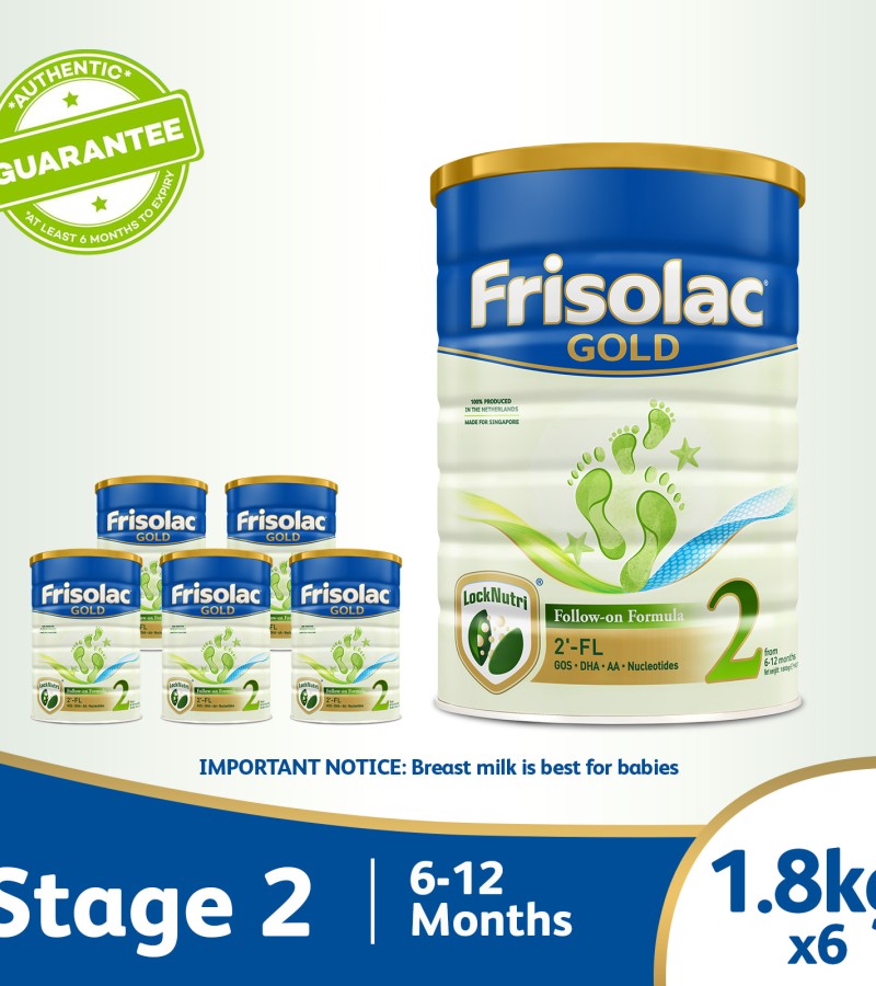 Frisolac Gold Stage 2'-FL 2 Follow-On 1.8kg - Infant Newborn Baby Milk Formula for 6-12 months