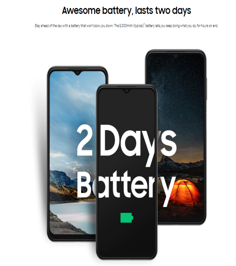 • NETWORKTechnologyGSM / HSPA / LTELAUNCHAnnounced2022, March 04StatusAvailable. Released 2022, March 23BODYDimensions165.1 x 76.4 x 8.8 mm (6.5 x 3.01 x 0.35 in)Weight195 g (6.88 oz)BuildGlass front (Gorilla Glass 5), plastic frame, plastic backSIMSingle SIM (Nano-SIM) or Dual SIM (Nano-SIM, dual stand-by)DISPLAYTypePLS LCDSize6.6 inches, 104.9 cm2 (~83.2% screen-to-body ratio)Resolution1080 x 2408 pixels, 20:9 ratio (~400 ppi density)ProtectionCorning Gorilla Glass 5PLATFORMOSAndroid 12, One UI 4.1ChipsetExynos 850 (8nm)CPUOcta-core (4x2.0 GHz Cortex-A55 & 4x2.0 GHz Cortex-A55)GPUMali-G52MEMORYCard slotmicroSDXC (dedicated slot)Internal32GB 3GB RAM, 64GB 4GB RAM, 128GB 4GB RAM, 128GB 6GB RAM