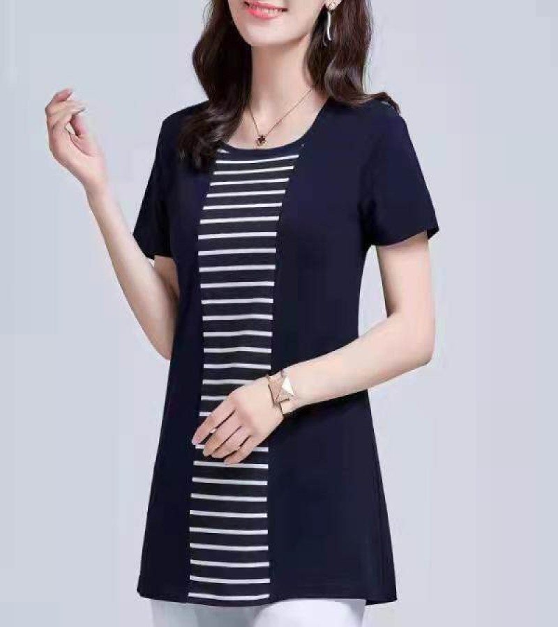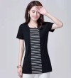 100KG胖女可穿2022新款韩式条纹长袖T恤女式短袖加大码盖腹圆领时尚T恤连衣裙优雅衬衫女式T恤