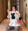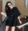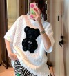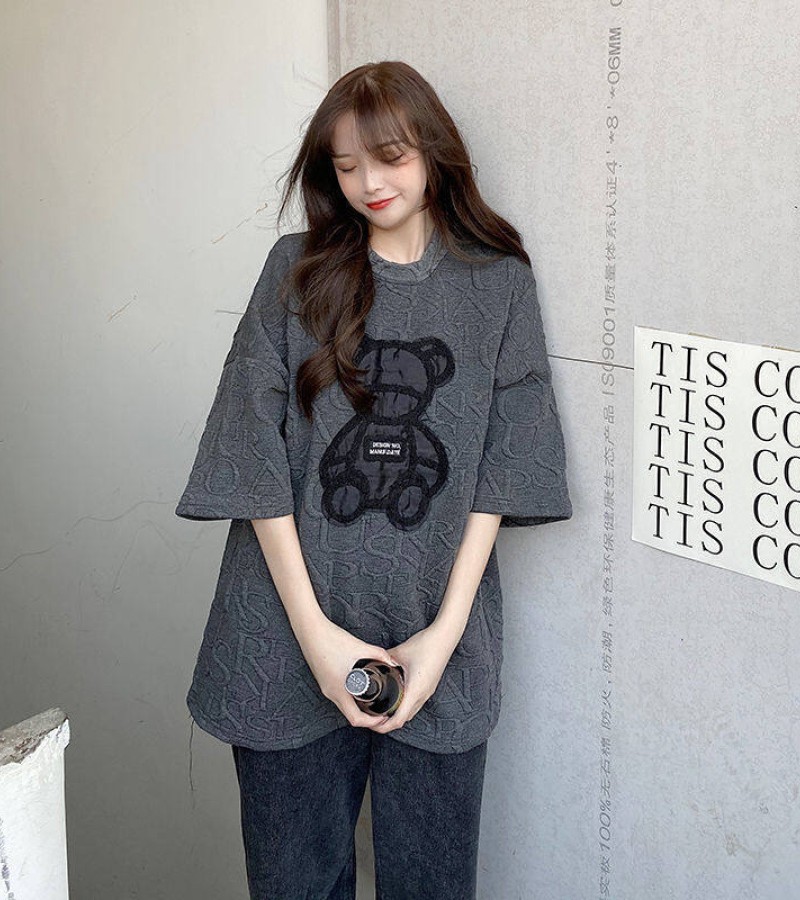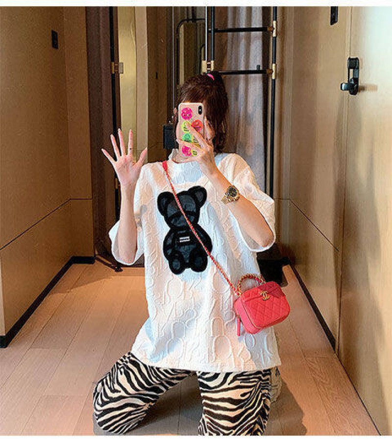 【40-80Kg】Plus size ins tshirt for women Korean version BF bear embroidery short sleeve loose all-match casual bottoming shirt