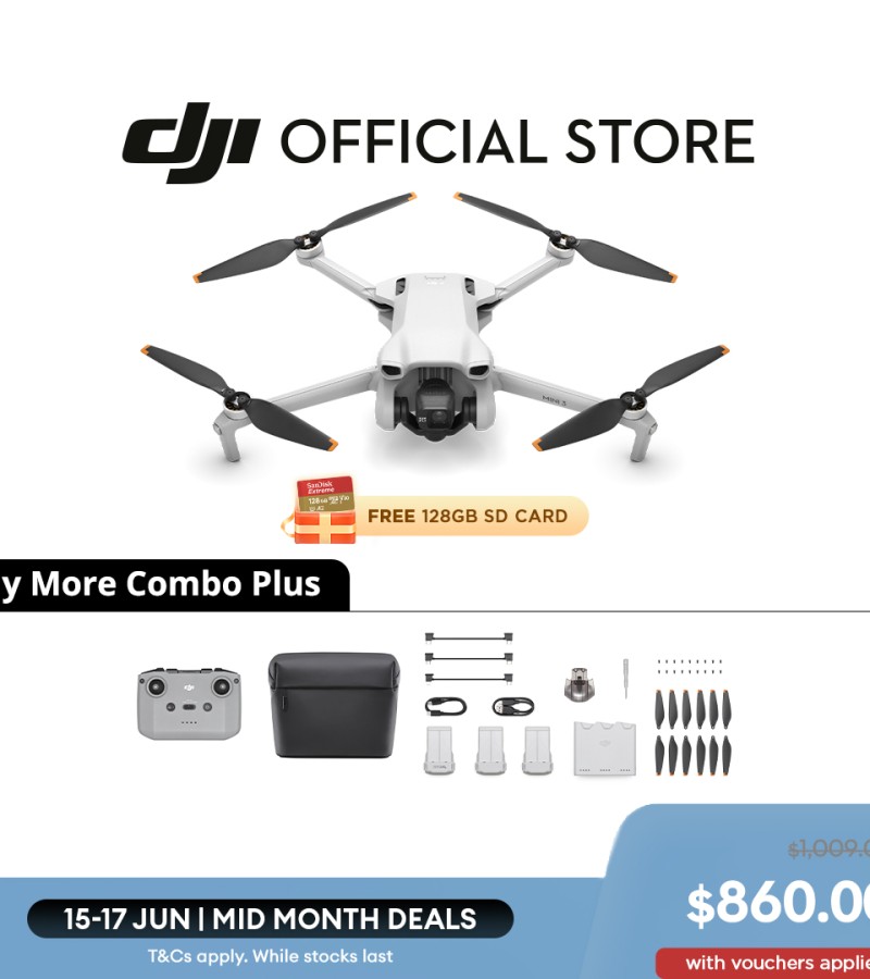 DJI Mini 3-无人机相机| 249g以下| 4K HDR视频|延长电池寿命|真正的垂直拍摄| 38kph 5级抗风|(无人机无需注册)