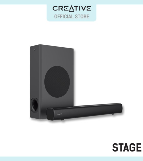 Creative Stage-2.1声道监听音箱,带低音炮,适用于电视、电脑和超宽显示器,蓝牙/光学输入/TV ARC/AUX输入,遥控器和壁挂套件